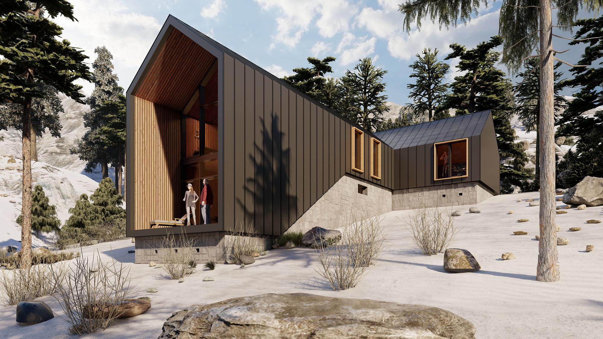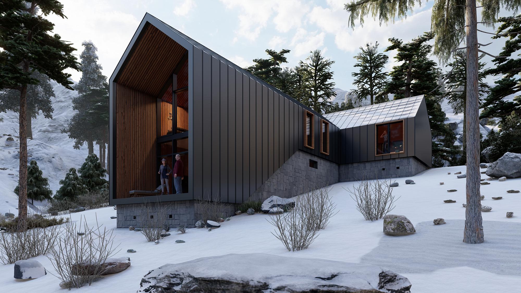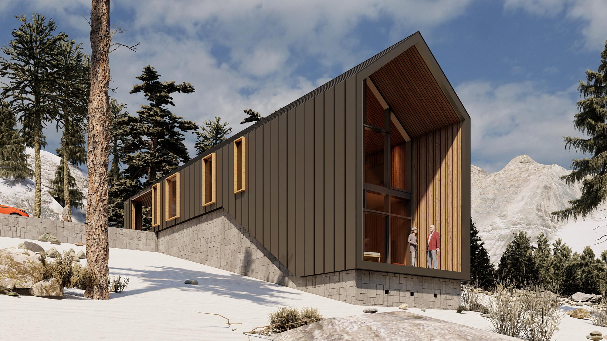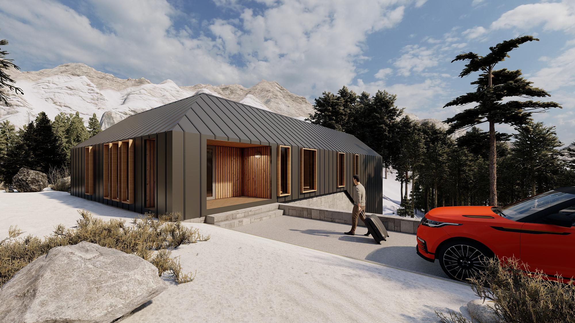 Итогом проекта получили простой и суровый, без украшений дом. Наш Barnhouse удобен. Здесь подчеркнуто большое двусветное (или полуторо-светное) гостиное пространство - оно развивается вниз по рельефу склона и имеет модификации 300 - 350 м2. Дом лоялен по отношению к природе и отлично смотрится на горном склоне Архыза – на фоне луга и гор.