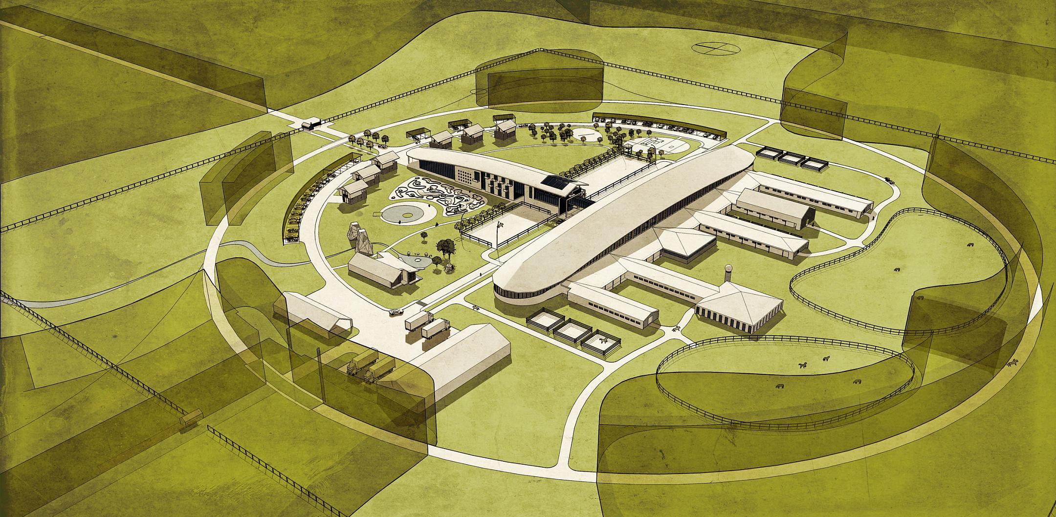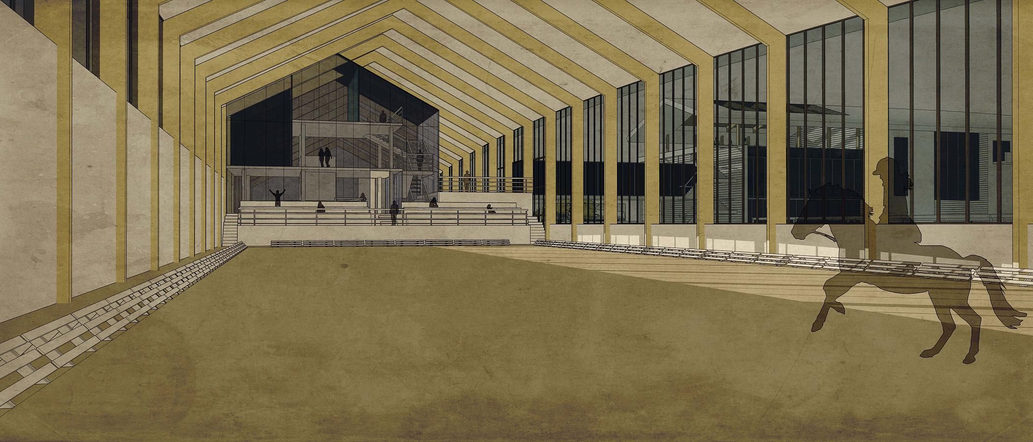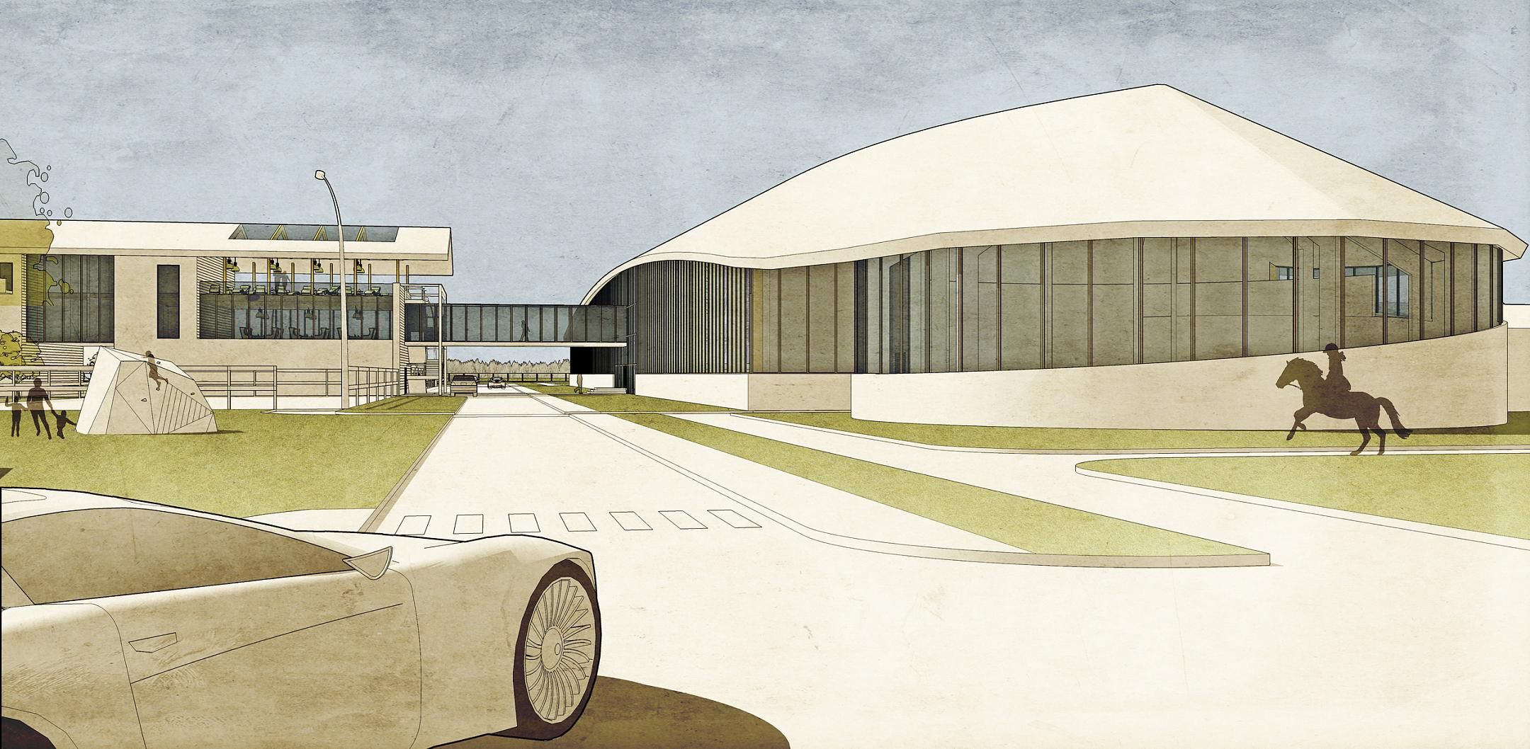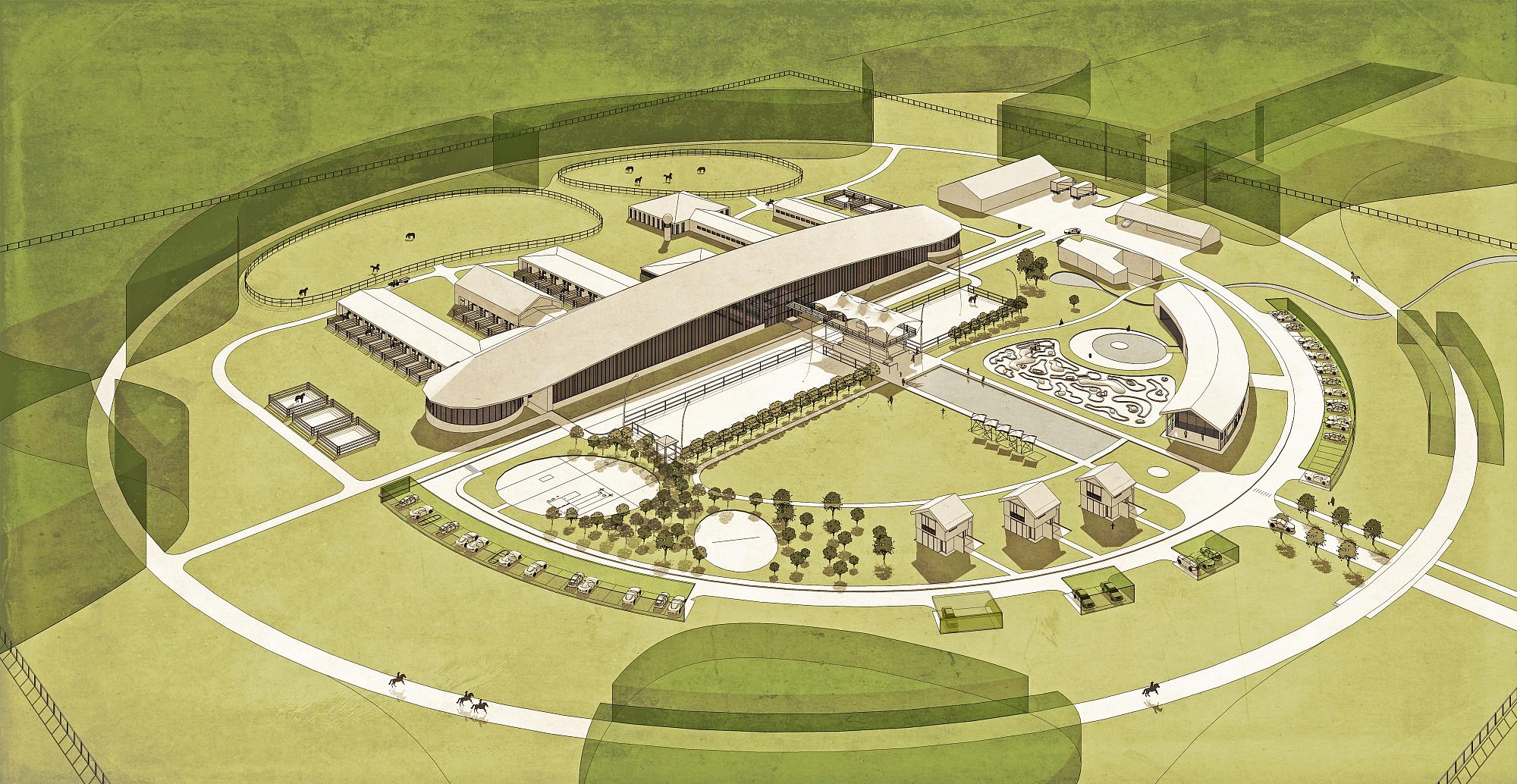 сооружения, где будет проводиться тренинг и реабилитация лошадей (шпрингартен, круглые манежи, бассейны, бочки и т.п.);