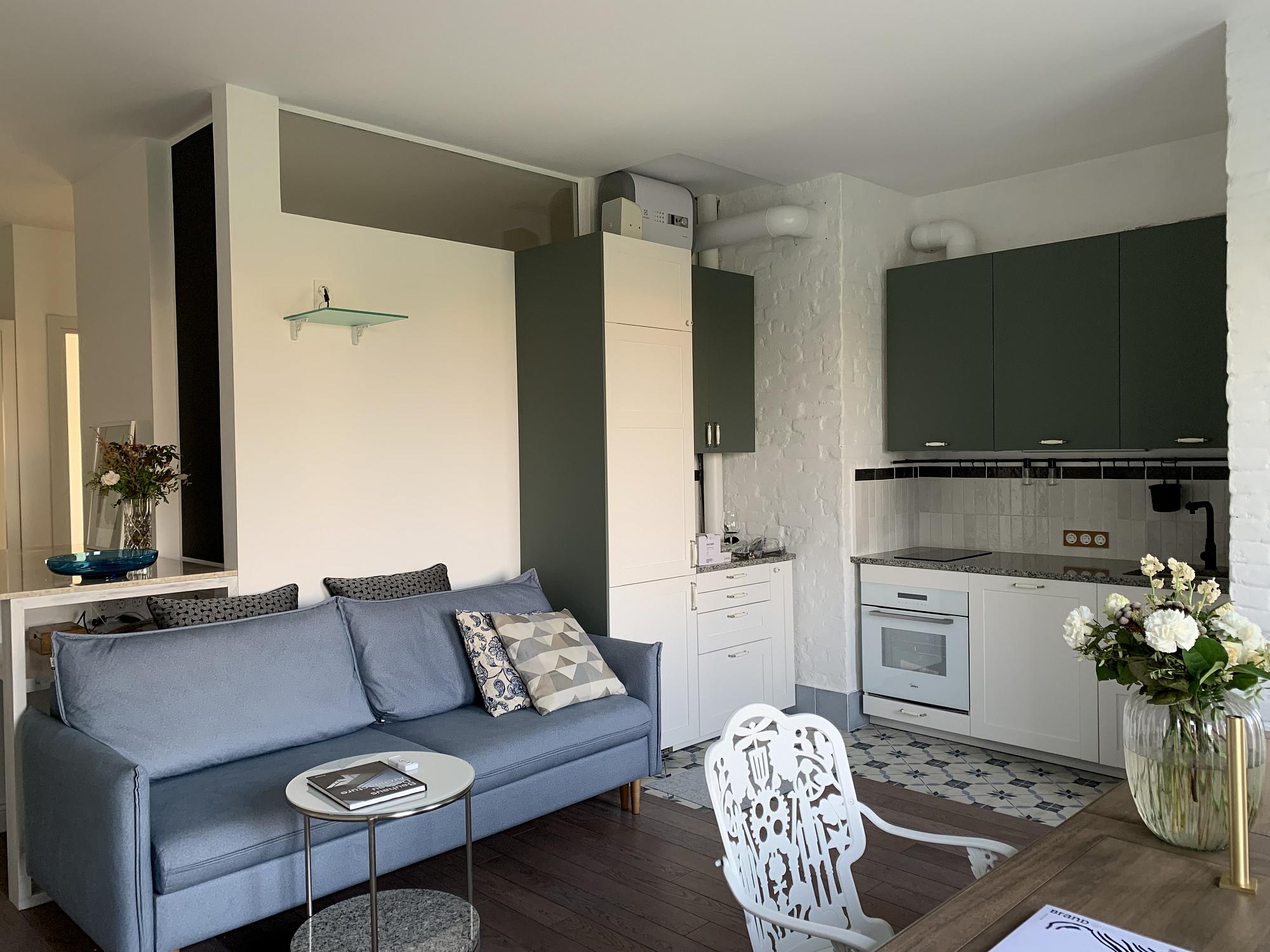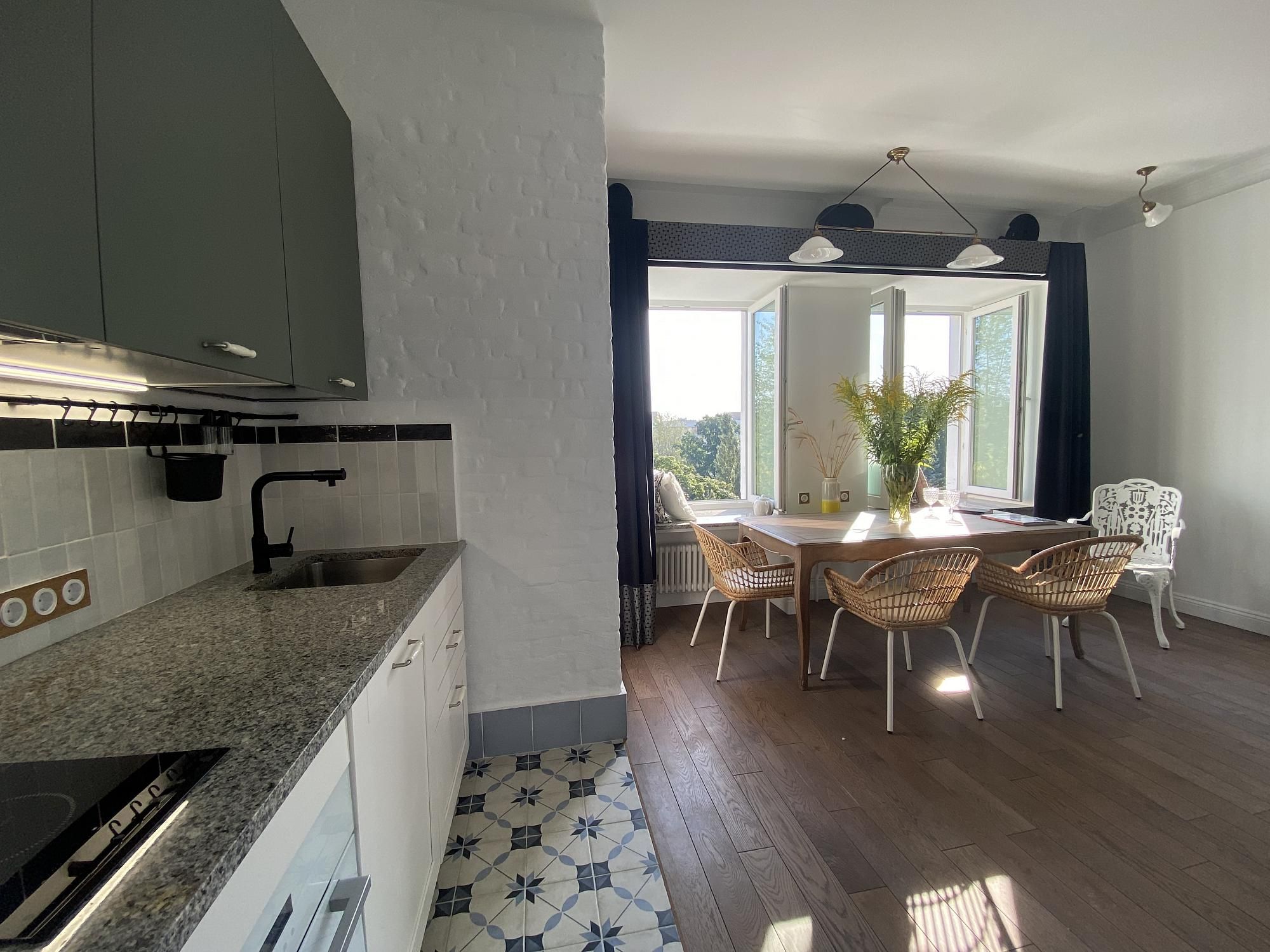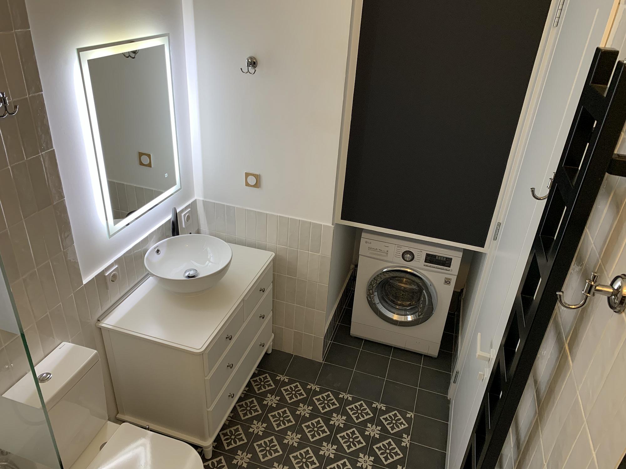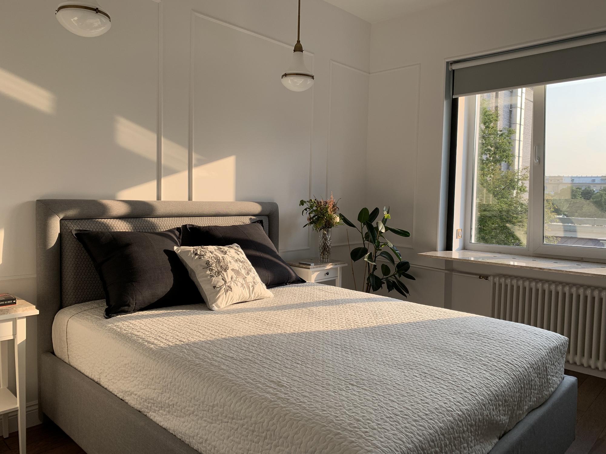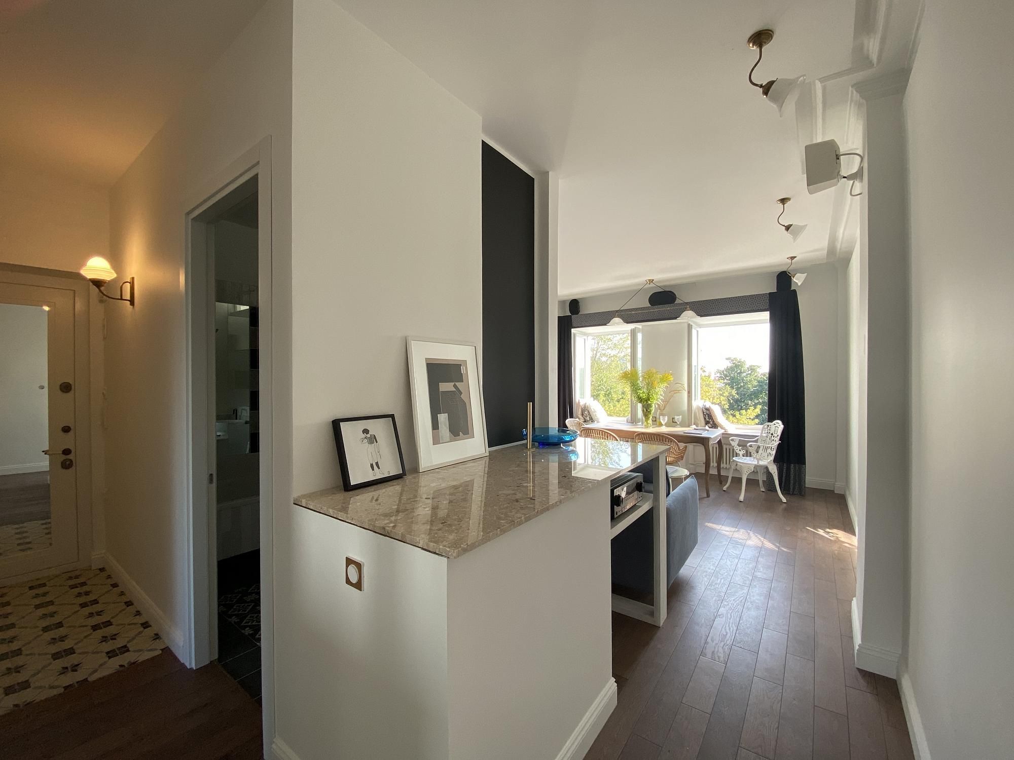 Планировка - распашонка - возможность сквозного проветривания. На кухне система фильтрации питьевой воды Гейзер Престиж выведена в кухонный кран. Современные инженерные системы, теплые полы. Свет Ар-деко латунный Берлинер, удобные датчики движения прихожей и кухни, авторская мебель, энерго-эффективные окна Schuco. Полы массив дуба, подоконники и столы итальянский мрамор и испанский гранит. Санузел с большой ванной Duravit (мягкий подголовник) удобно душ принимать (оборудован термостатом - выставляется постоянная температура воды), пол с подогревом, гигиенический душ, зеркало с системой антизапотевания. Кроме полотенцесушителя предусмотрена теплая стена под крючками для полотенец. Тихая инверторная стирально-сушильная машина. В спальной комнате ортопедический матрас, кровать с мягким подиумом и лифт механизмом - большое дополнительное место для хранения. Удобная гардеробная комната при спальне оборудована комодами и гибкой системой релингов для одежды, брючниц и полок. Большой широкий мраморный подоконник может выполнять функцию домашнего офиса - откосы оборудованы розетками. Все комнаты оборудованы шторами (люксовые ткани): спальная рулонная штора с эл. приводом. Широкий подоконник гостиной зоны объединяет два окна - на нем подушки и можно комфортно загорать или читать - как на балконе.