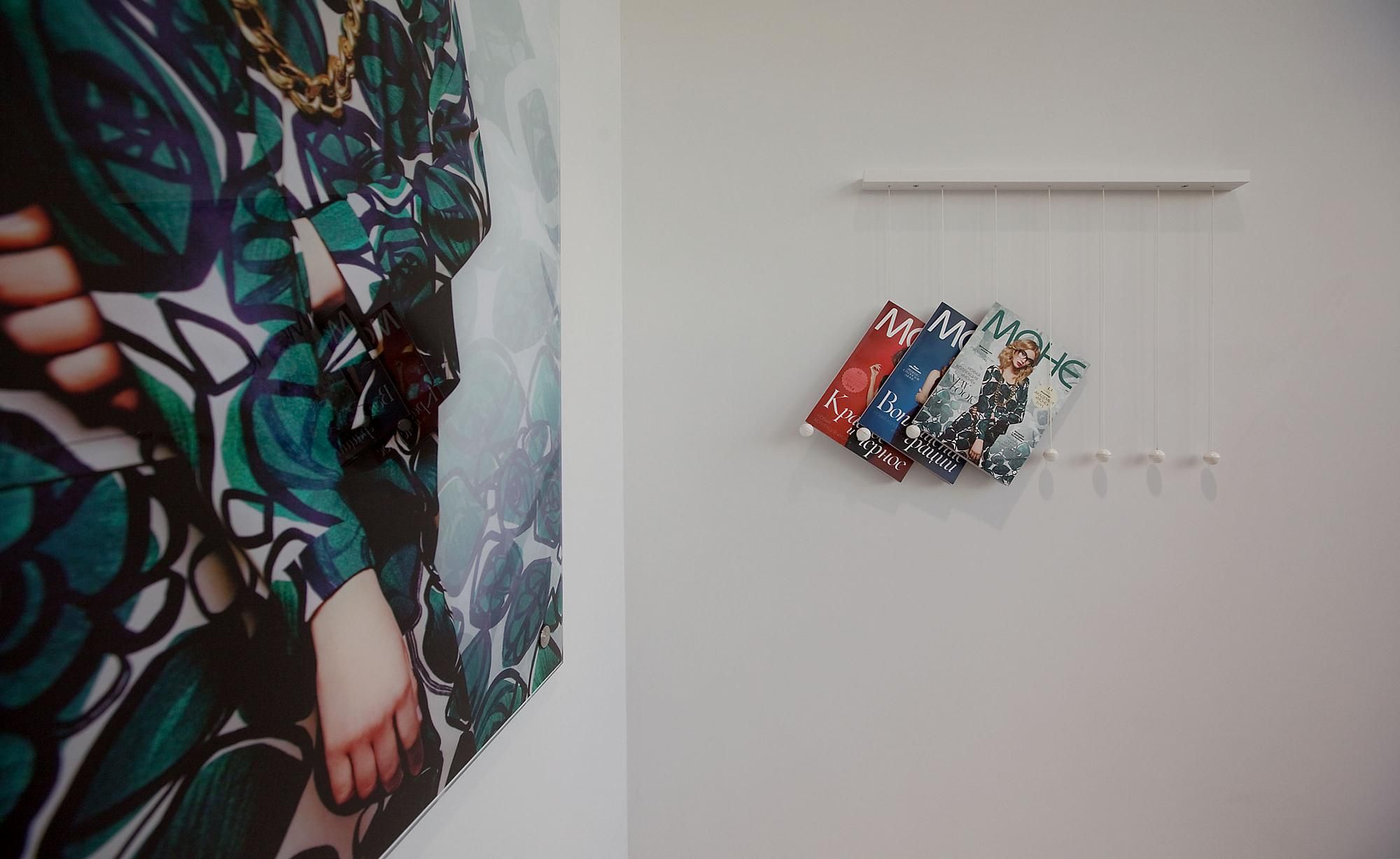 Интерьер салона выдержана в строгом классическом стиле. Пространство запроектировано «фоном» для произведений актуального искусства, которые ежедневно создают стилисты.