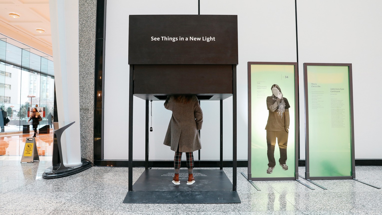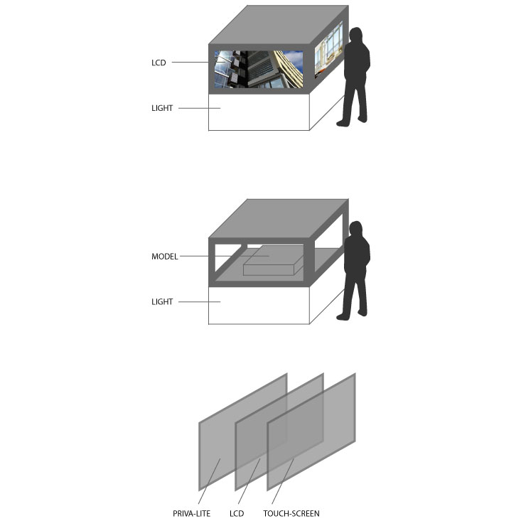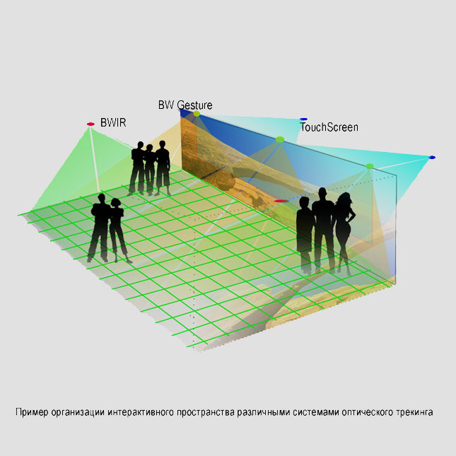 Интерактивная Стена - это интерактивный дисплей, который выполняет две функции: это маркетинговый инструмент, позволяющий представлять проекты Capital Group, и забавная интерактивная система, которая приглашает людей поиграть, привлекая публику к стенду. Это большой экран (2х2 метра) обратной проекции, который показывает анимацию и слайд-шоу изображений. Интерфейс с контентом работает через сенсорную систему. Камера на внутренней стороне инсталляции недоступна и видима для публики, фиксирует любое прикосновение с другой стороны экрана (через полупрозрачную матовую поверхность) и анализирует изображение, находя координаты «x» и «y» положения руки. Поэтому рука посетитяля работает как мышь.