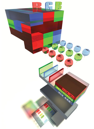 Дом и мастерские для трех практикующих архитекторов. Следствием сложной пространственной комбинаторики объемов трех жилых модулей получаем эффективный и компактный параллелепипед, функциональные составляющие которого обладают жизненно важными качествами. Гостиные выходят на солнечную южную сторону и имеют выходы на летние террасы, имеющие возможность трансформироваться в единую площадку. Спальни обращены во двор на восток. Каждый модуль имеет отдельный вход через свой сад. Каждый модуль обладает удобной функциональной связью с блоком мастерских. По мнению жюри конкурса Architectural Review "RGB - house" - это выигранная партия в трехмерный тетрис.