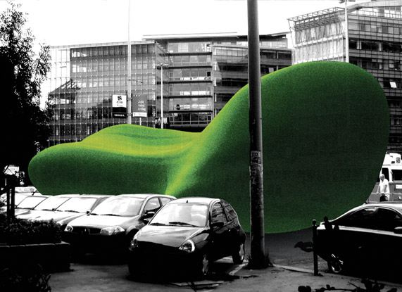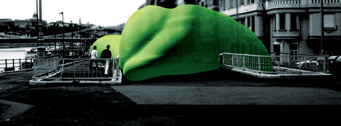 Сценарий: Оболочка (реализована девятьсоткубовым объемом концепт-павильона) позволит получить глоток чистого воздуха в самых экстримальных с точки зрения экологии пространствах мегаполиса. Использовать обьект по назначению можно одновременно снаружи и внутри. Его форма может меняется, реагируя на ветер. Или Вы измените форму снаружи,подмяв часть легкой оболочки наехав на нее вашей детской коляской. Или Вы можите упасть на купол, и он мягко опустит вас на землю, что не помешает находящимся в интерьере полупрозрачной оболочки отдыхать от городского шума и явится посетителям интерьера театром теней. Воздух внутри павильона может быть охлажден или подогрет, а также окрашен запахом, в зависимости от погодных условий. На поверхность павильона как снаружи, так и изнутри, проецируется видео и осуществляется кинематическая подсветка.