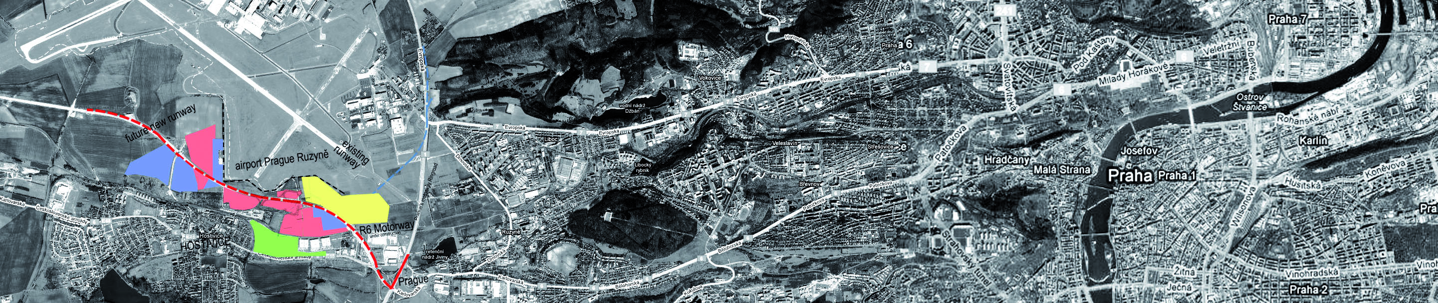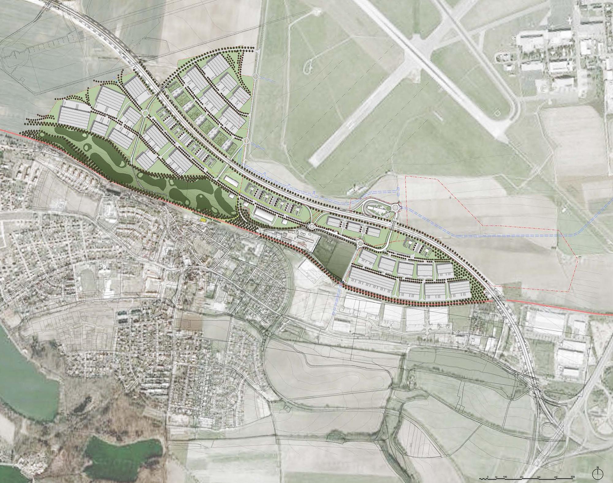 Проект архитектурно-планировочного развития анализирует территорию, граничащую с аэропортом Рузана и городом Хоствич, рядом с Прагой. Девелопмент растянулся вдоль 5-и километрового отрезка нового шоссе Р6 (строительство находится на стадии завершения). Это ключевой инфраструктурный проект Праги, согласно которому добавляется еще одна взлетно-посадочная полоса и реконструируется местная железная дорога и станцию. Проектные работы проводились на основании исследования, проведенного Cushman and Wakefield о потенциале развития настоящих владений SEGRO. Отчет идентифицирует отличные возможности по расширению индустриальной программы, офисов, торговых ангаров и складов. В процессе архитектурной аналитики и проектирования программа была переработана и расширена бизнес парком класса А и Б, гольф клубом, торговым комплексом, гостиницей, мотелем и автозаправочной станцией. Был внедрен ряд эффективных природоохранных технологий.