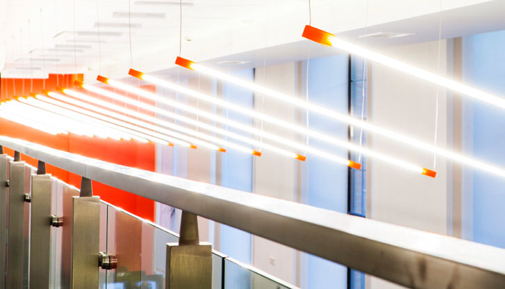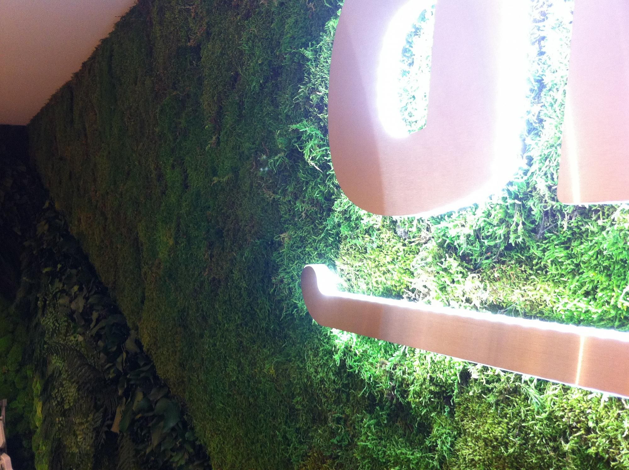В местах повышенной проходимости в качестве напольного покрытия применена сверхтонкая крупноразмерная керамика (плиты 3 х 1 метр, толщиной 3 мм) с орнаментальной гидравлической резкой элементов фирменного стиля компании.