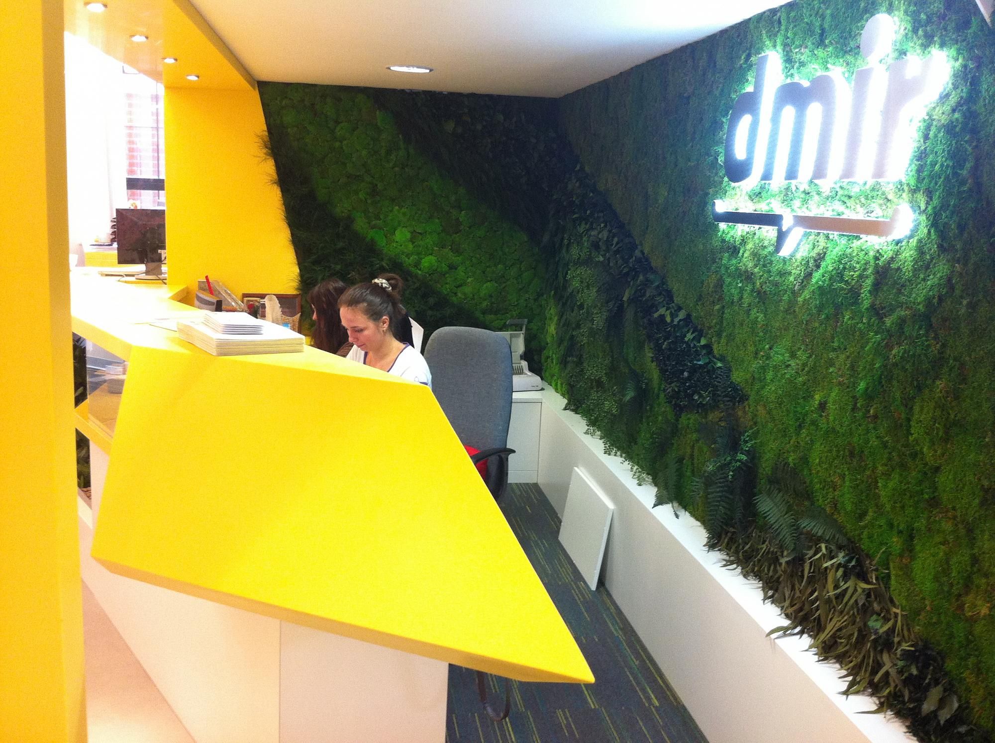Сотрудников и гостей «Деловой мир онлайн» встречает зоной ресепшен со стеной из настоящего мха. На первом уровне находятся оупенспейсы. Сначала сотрудники, привыкшие к офисам с кабинетами, неоднозначно отнеслись к этой идее, но в итоге все остались довольны. Создание комфортных зон для отдыха и общения было единственным обязательным требованием к архитекторам. На втором уровне, помимо нескольких кабинетов руководства и ещё одного небольшого оупенспейса, предусмотрены свободные зоны с пуфиками и настольными играми.