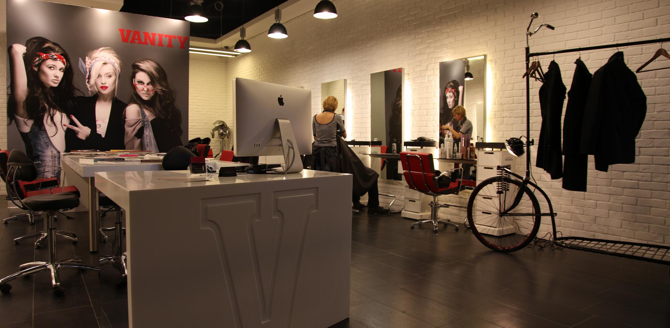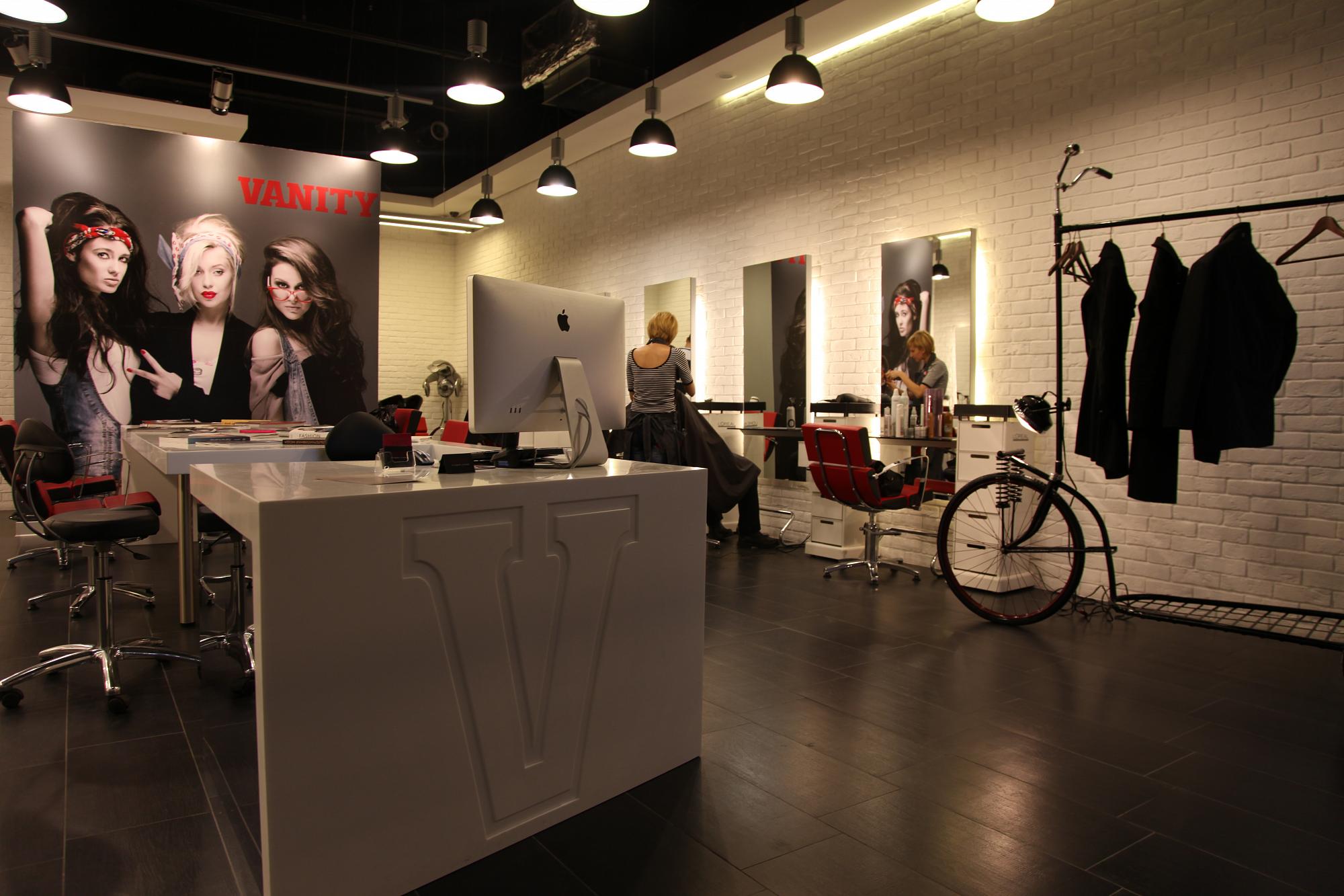 Студия стиля Vanity это проект Александра Глушкова (сеть салонов MOHE и ТОЧКА КРАСОТЫ) сфокусированный на средний класс. Заданием на дизайн интерьера салона стала стилистика Лофт.