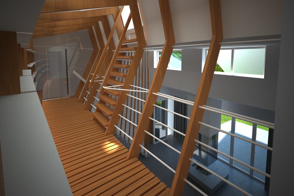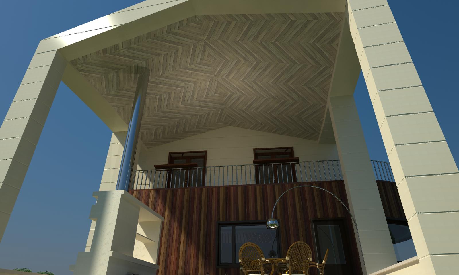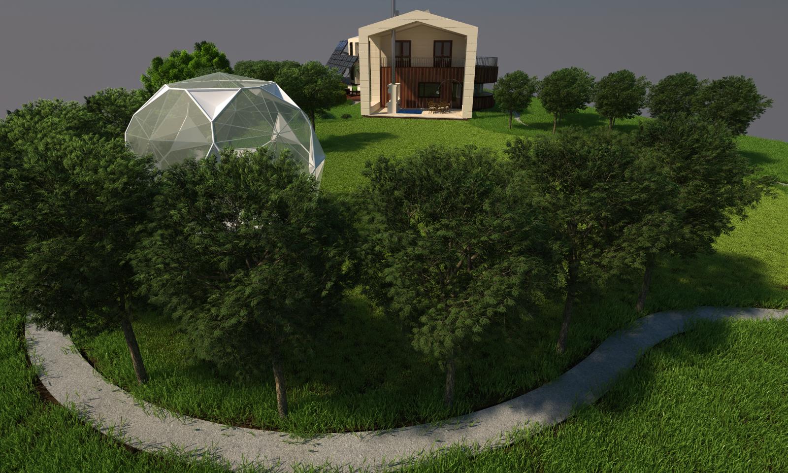 Расположение помещений и веранд дома используют эту ситуационную особенность как преимущество. Расположив основные помещения дома на “стыке” участков мы получаем уникальное преимущество - вид на соседние участки, исключающий застройку непосредственно перед окнами нашего дома, т.к. согласно действующим нормативам, соседствующие застройщики (обладая стандартным “одинарным” земельным лотом) обязаны отступить потенциальной застройкой минимум на 3 метра от границы участков.