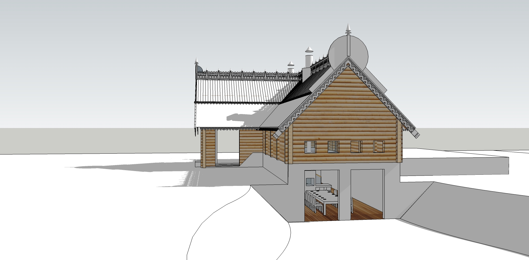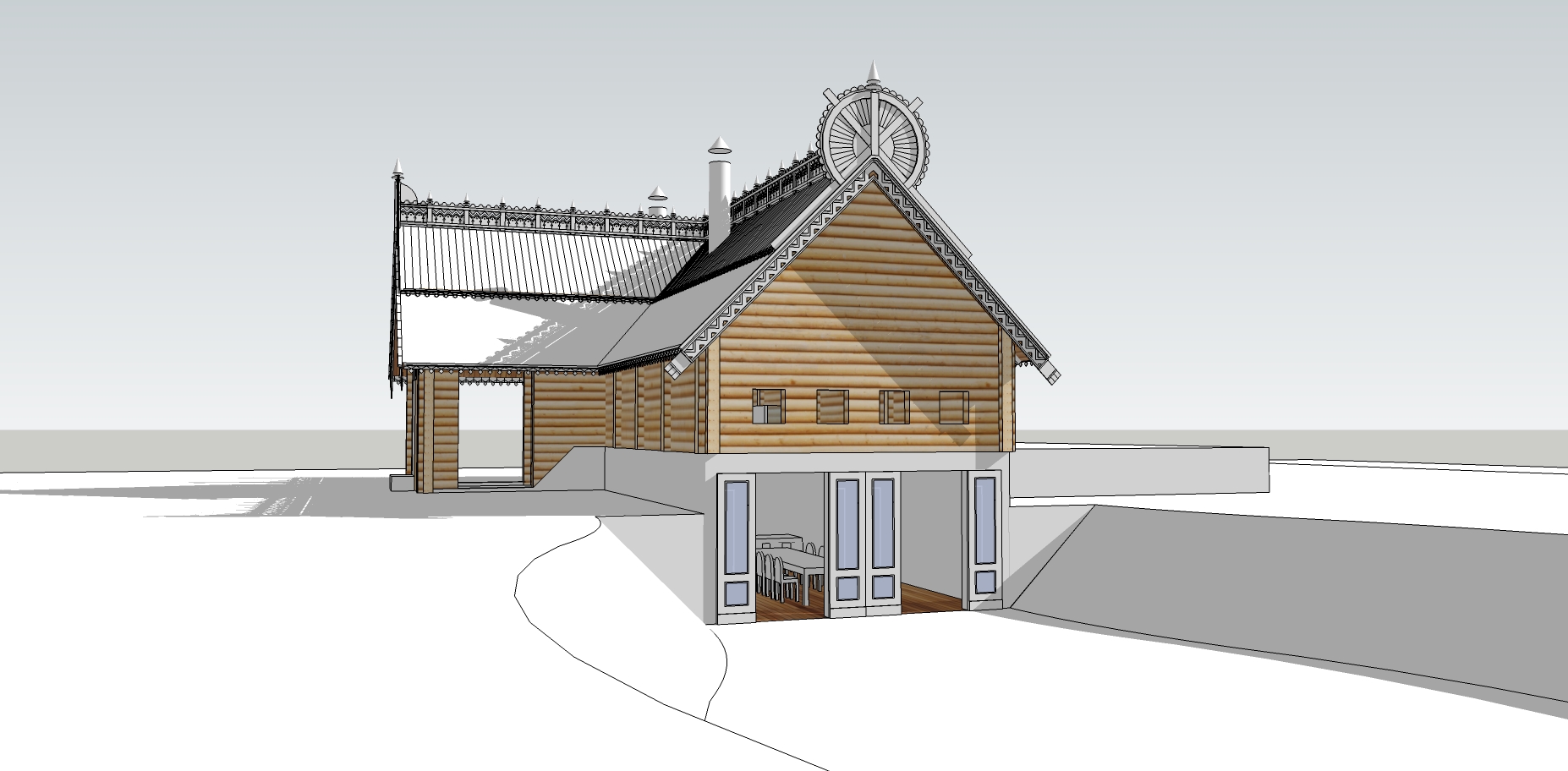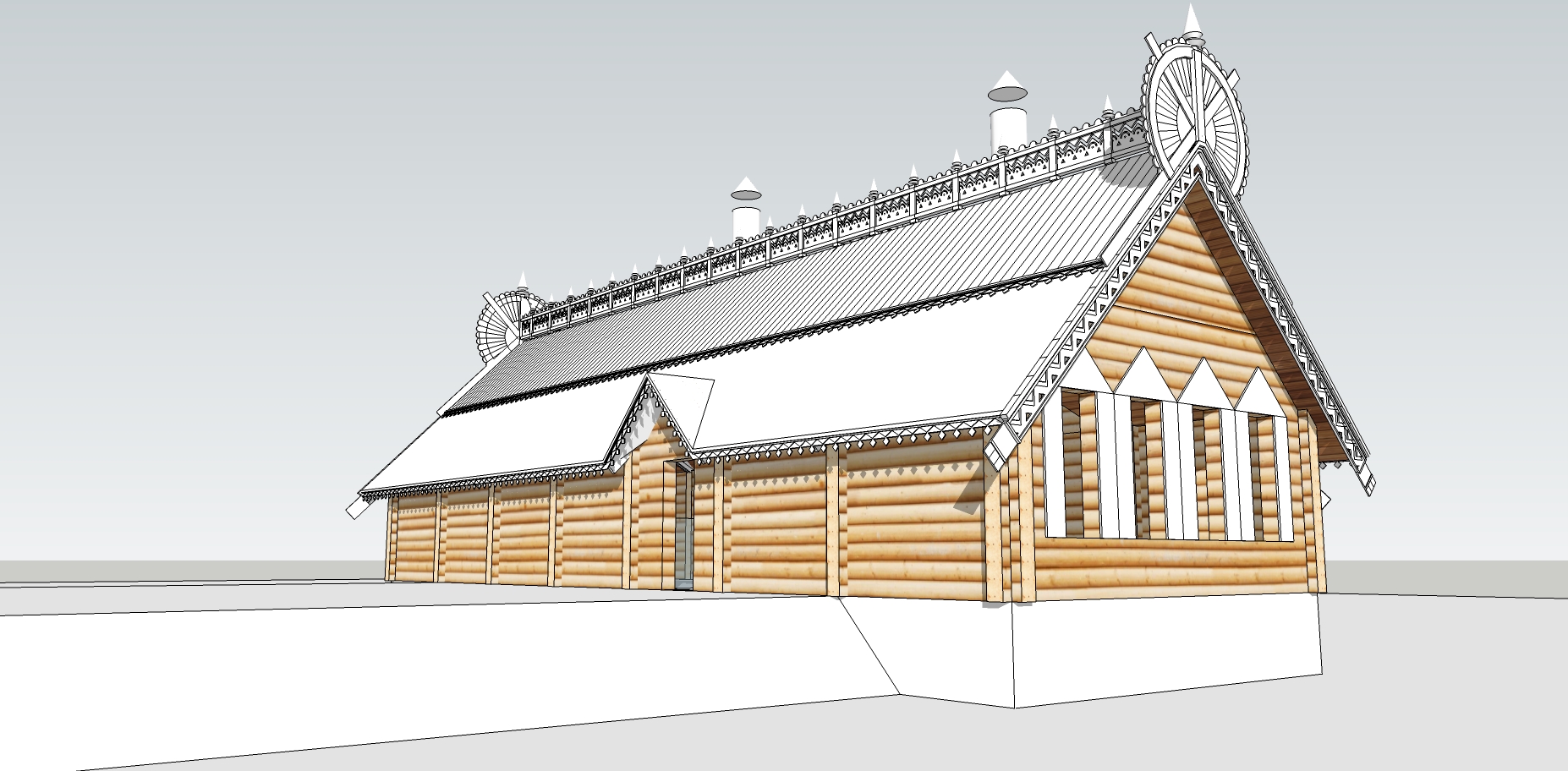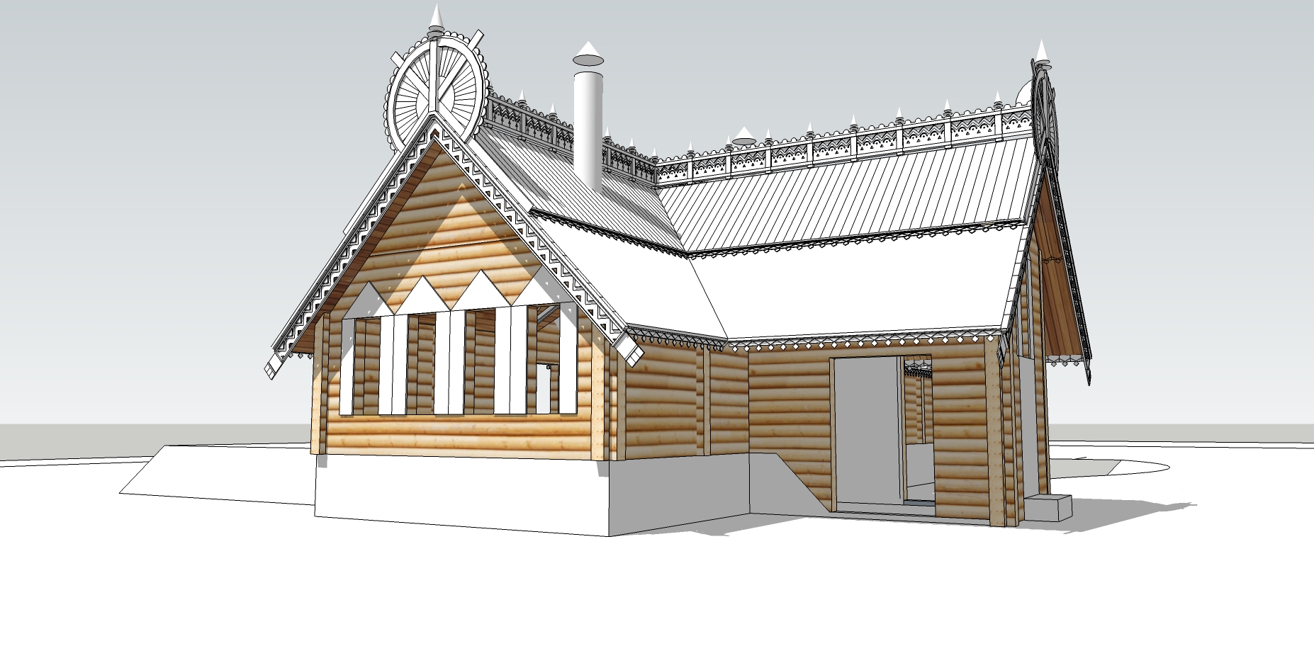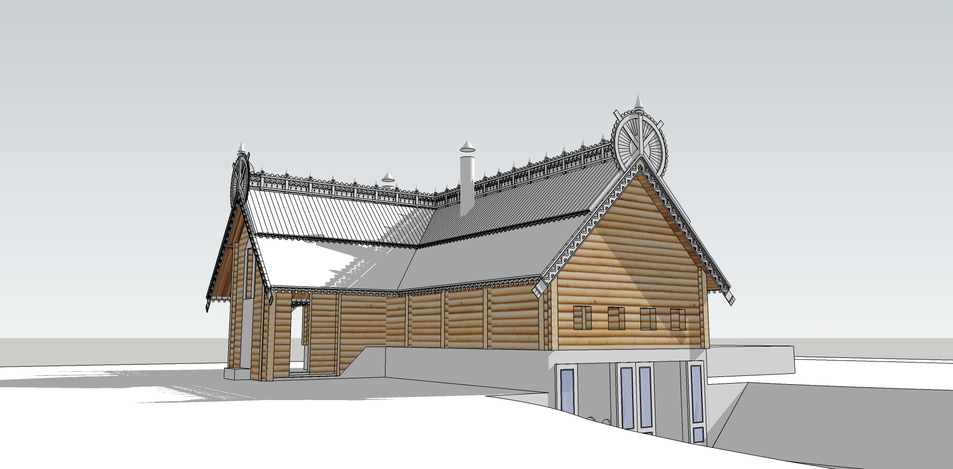 Реконструкция дома в русском стиле. Лафет, резьба, декоративные изделия.
