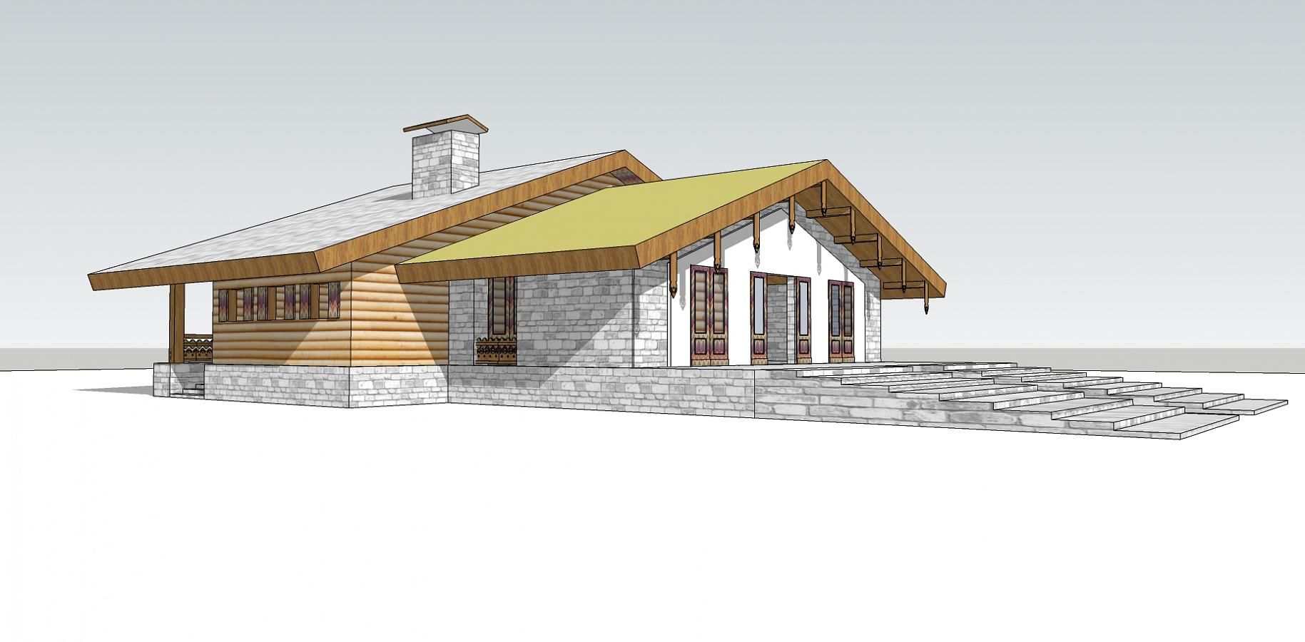 Реконструкция дома в стиле альпийского шале - пологие скатные крыши, гонт, клееный брус.