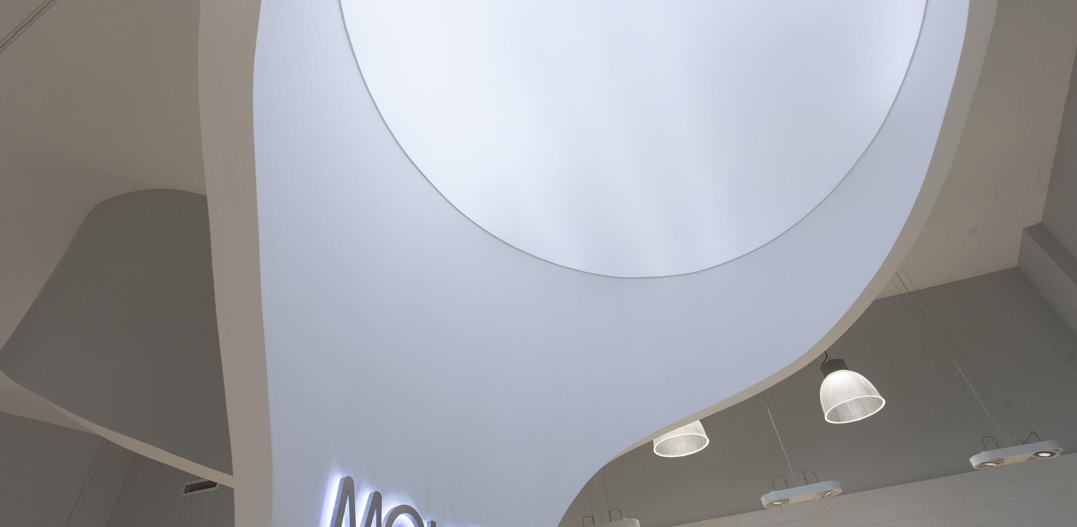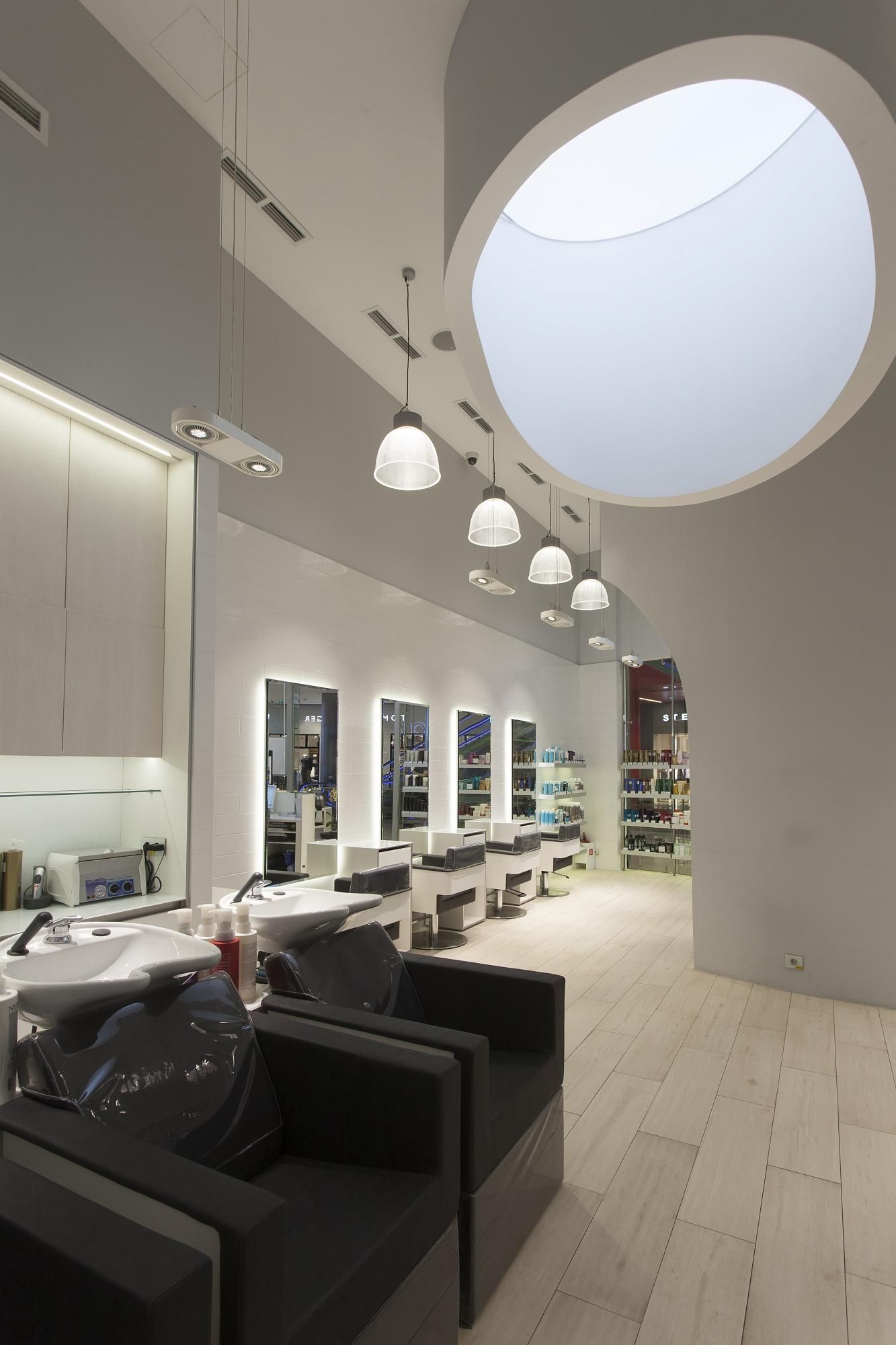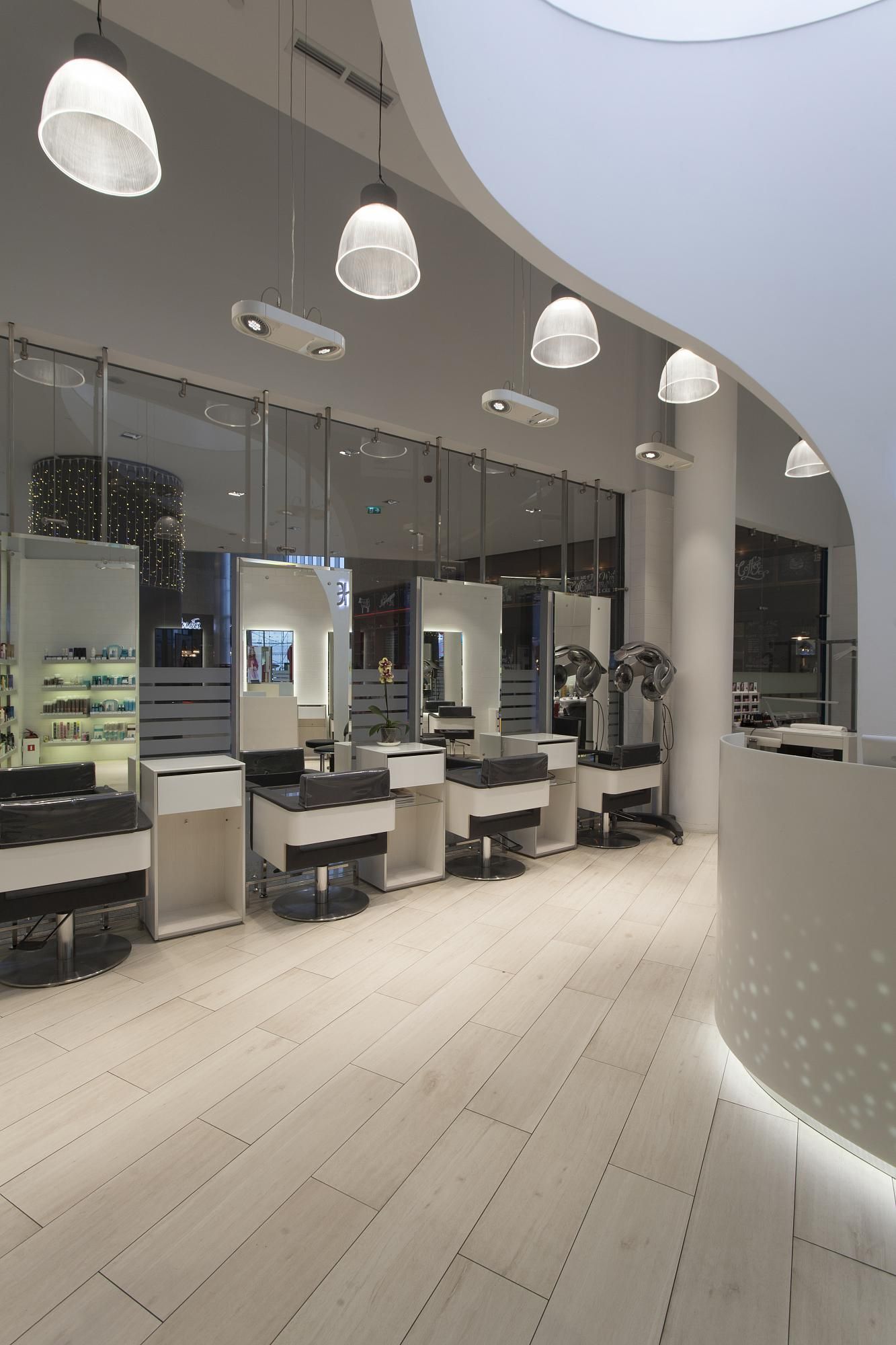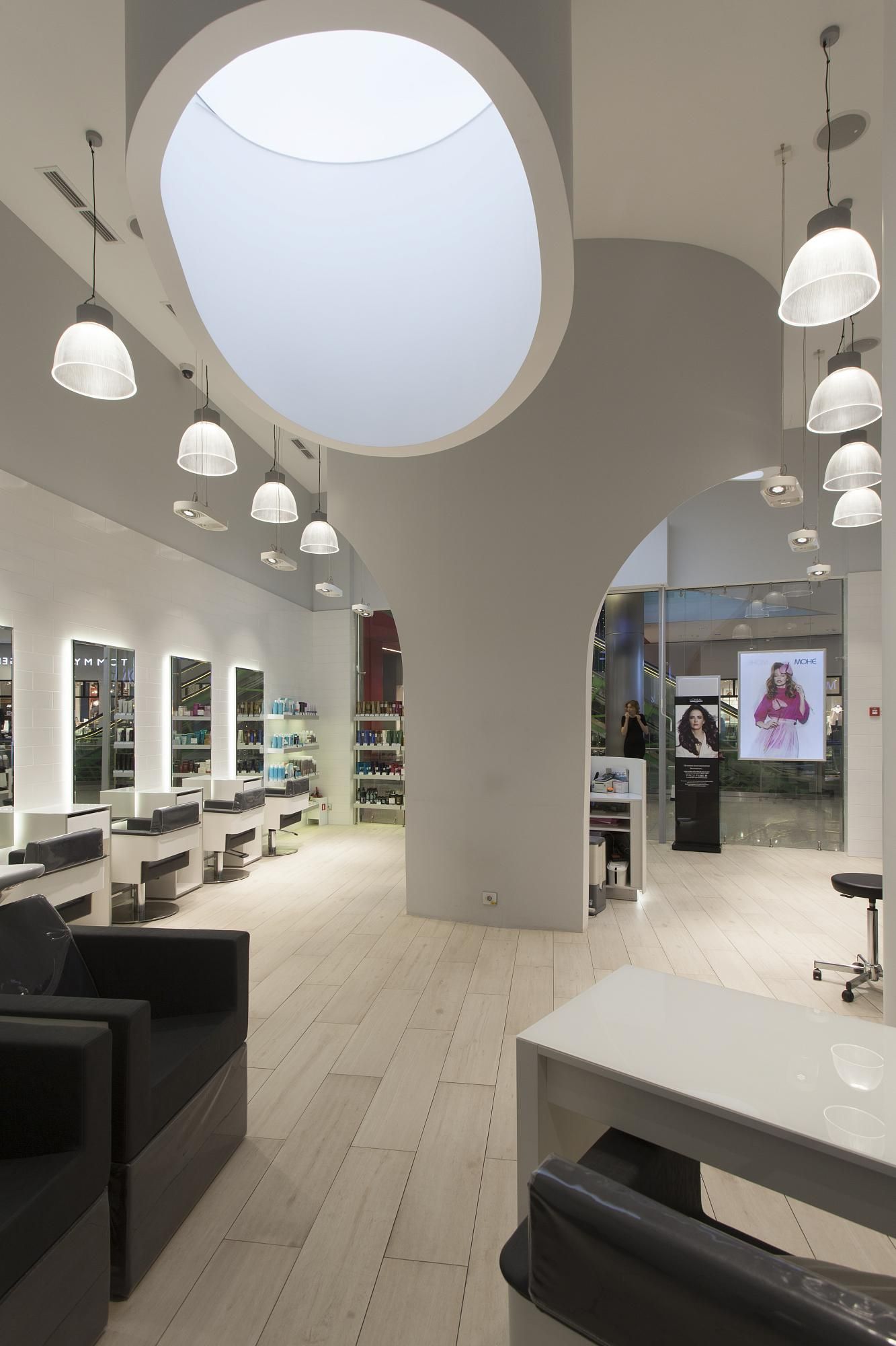 Один из самых успешных салонов сети. Скульптурная подобная природе форма в центре парикхмахерского зала организует пространство и распределяет потоки посетителей.